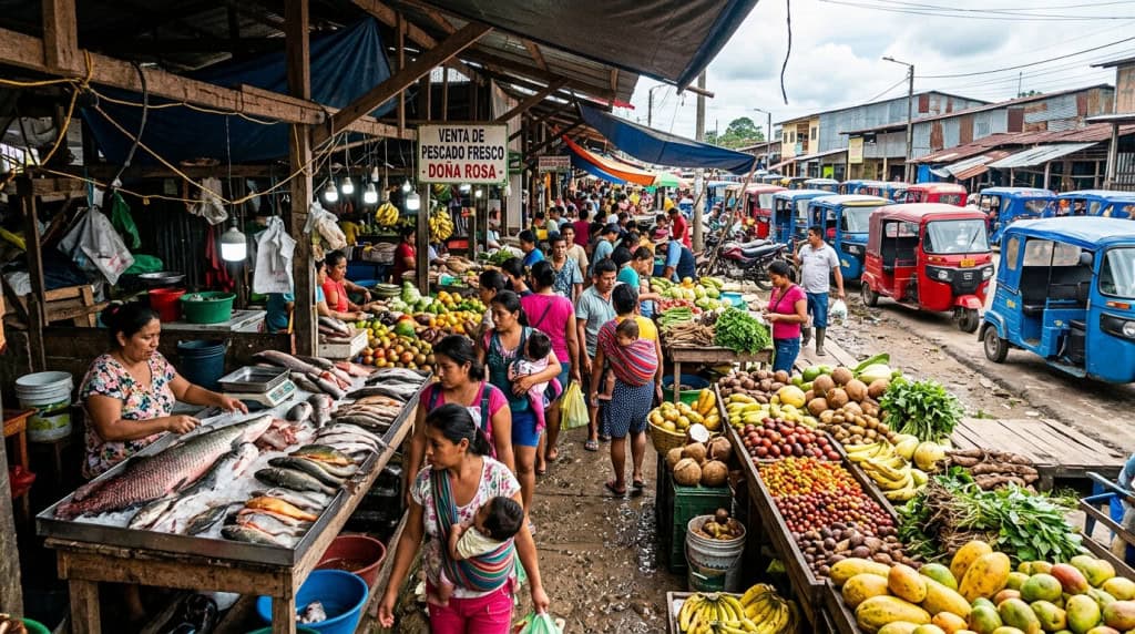 O coração do cotidiano de Iquitos bate no Mercado de Belén, labirinto de cores e cheiros onde se encontra de tudo: peixes recém-pescados do Amazonas, frutas que não existem fora da Amazônia, plantas medicinais e o corredor dos xamãs, o Callejón de los Chamanes, onde curandeiros vendem ervas e preparos espirituais. É um mercado para ser explorado com guia e sem pressa.