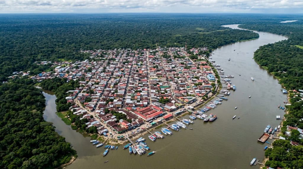 Quem chega a Iquitos, no nordeste do Peru, desce de avião ou ancora depois de dias de barco pelo Rio Amazonas. Não existe outro caminho. A maior cidade do mundo sem acesso rodoviário cresceu isolada na selva amazônica, e esse isolamento moldou tudo: a arquitetura, o mercado, o tempo e o jeito de viver.