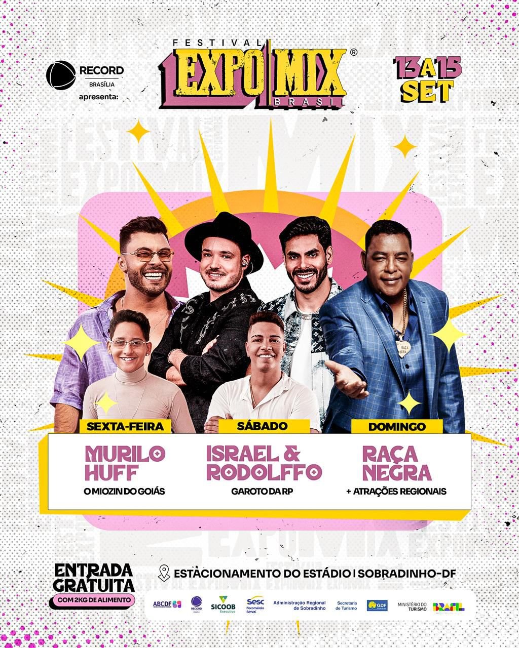 - 14/09 – Israel e Rodolffo: A dupla sertaneja que conquistou o Brasil sobe ao palco no segundo dia, garantindo uma noite repleta de energia, grandes hits e muita animação.